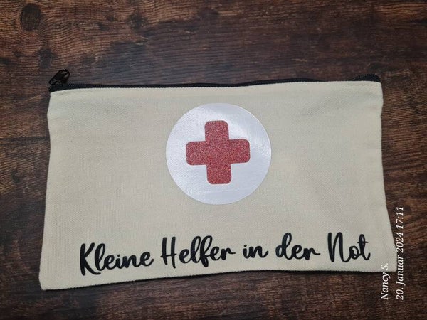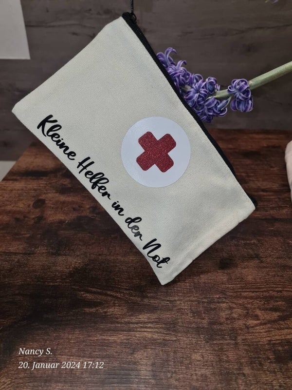 In diesem Täschlein habt ihr Platz für Pflaster, Schmerztabletten, Nasenspray, Lutschtabletten was auch immer man unterwegs braucht.